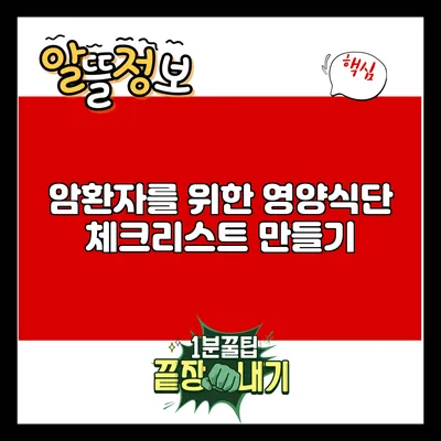 암환자를 위한 영양식단 체크리스트 만들기 암환자에게 적절한 영양섭취는 치료의 효과를 높이고 생활의 질을 향상시키는 데 중요해요. 그렇다면 암환자를 위한 영양식단은 어떤 요소들로 구성되어야 할까요? 이 글에서는 효과적인 영양식단을 구성하기 위한 체크리스트와 다양한 정보를 제공할 예정이에요. 암환자 영양의 중요성 암환자가 적절한 영양섭취를 하지 않으면 면역력이 떨어져 치료의 효과가 감소하고, 체중 감소와 피로가 심화될 수 있어요. 연구에 … Read more